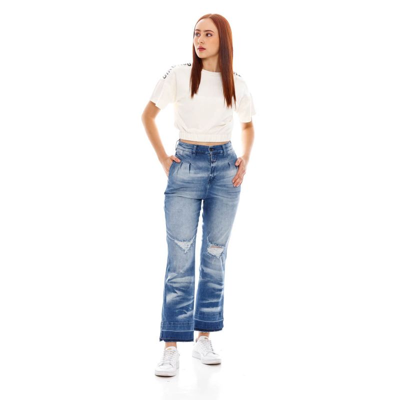 Marithé François Girbaud es una marca innovadora y vanguardista en conceptos de moda, donde podrás encontrar una amplia variedad de productos originales con telas de alta tecnología, tacto y apariencia inigualables. Descubre tu outfit completo ahora y no te quedes sin lo mejor de la moda internacional. Tela:Indigo Ref First Denim Up Galaxy • Composición:98.7%Algodón1.3%Poliester Elastano Fit:WideTipo De Cierre:CierreTiro:AltoBota:Campana • País origen:Colombia •La modelo mide entre 1.70 y 1.75. La prenda superior es talla m y la prenda inferior es talla 8.