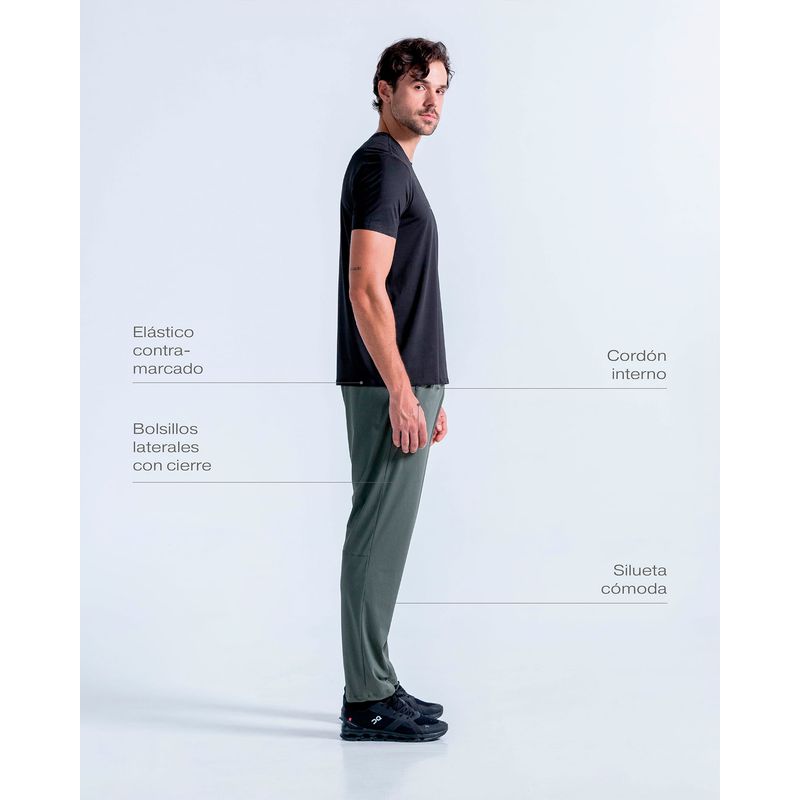 Pantalón deportivo con elástico contramarcado visible y cordón ajustable en la cintura para mayor comodidad. Sus bolsillos laterales con cremallera ofrecen seguridad para llevar lo que necesitas, mientras que los cortes posteriores le aportan un estilo moderno y juvenil.
