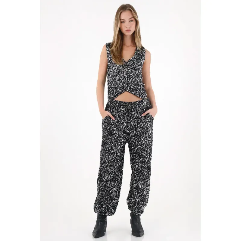 Con el diseño de un clásico jogger que te mantiene cómoda y estilizada sin sacrificar la seguridad, mientras disfrutas del toque brillante de sus apliques en lentejuelas. Su estructura ofrece libertad total de movimiento y un look que se adapta a cualquier plan.