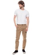 Pantalón tipo chino de tiro medio y bota ajustada confeccionado en drill de algodón con spandex. Esta prenda está hecha con el corazón por manos Colombianas.