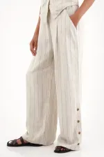 Diseñado en tela ligera con estampado preteñido a rayas, pretina lisa en frente, elástico en posterior y bolsillos diagonales para extra comodidad.
