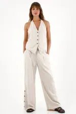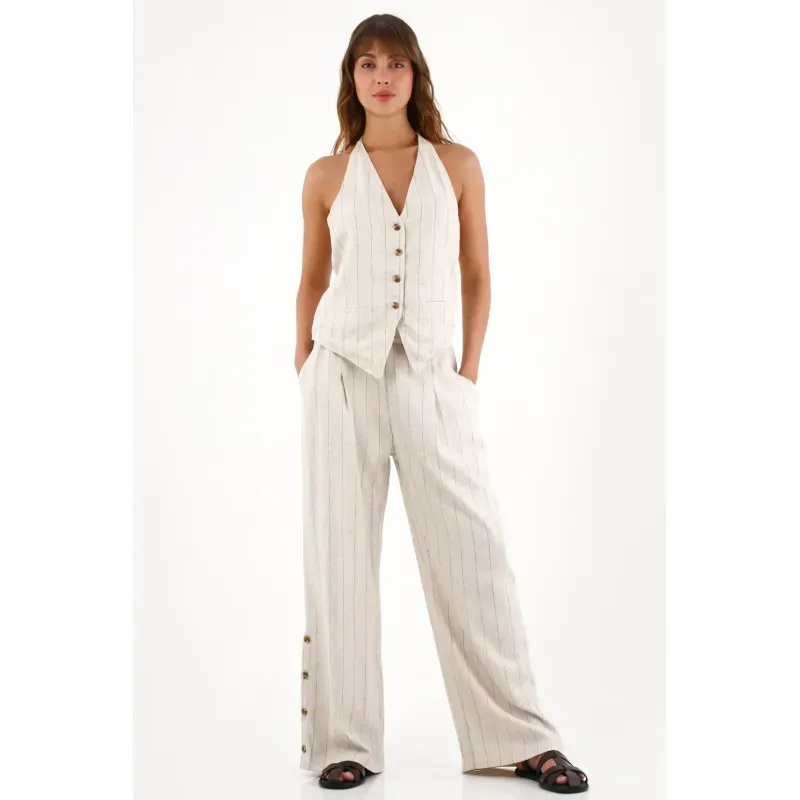 Este Wide Leg jean es la prenda que convierte cualquier look en un statement fresco y lleno de movimiento. Ideal para usar con camisetas básicas o crop tops, y elevarlo con tenis deportivos o tus botines favoritos. Las aberturas laterales con botones le agregan dinamismo y un toque muy a la moda.
