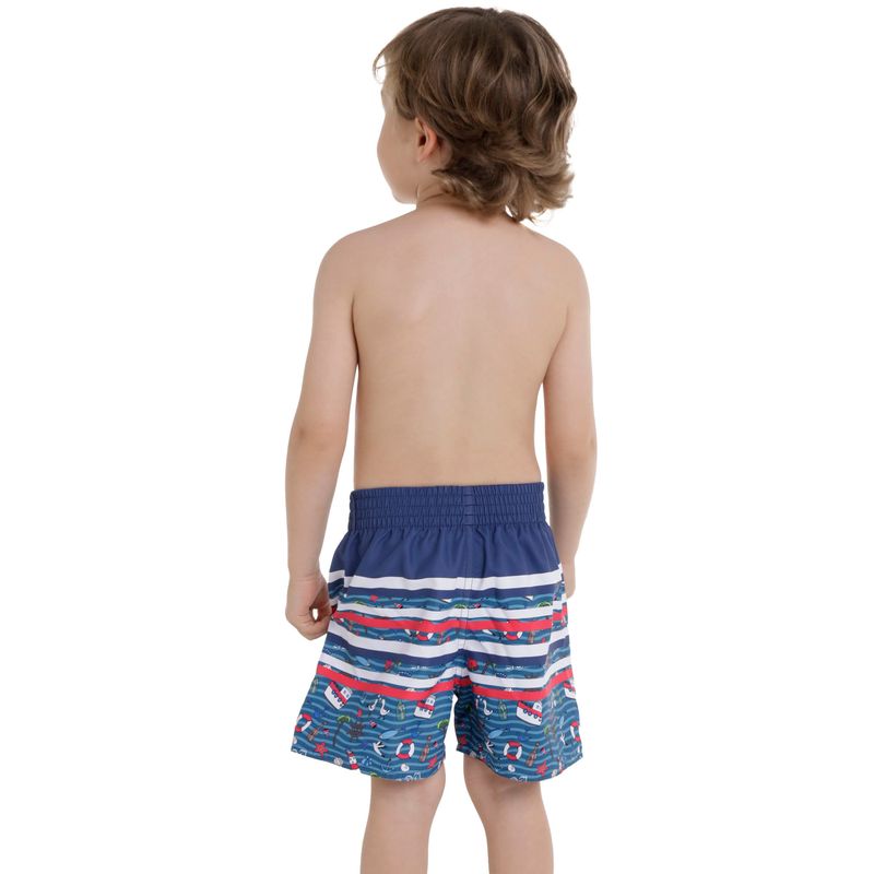 Un watershort de secado rápido azul con estampado, silueta amplia y pretina elástica que brinda mayor libertad de movimiento y comodidad a tu pequeño para que cada día sea una experiencia emocionante dentro y fuera del agua.