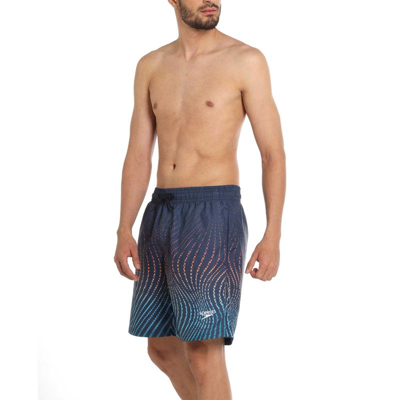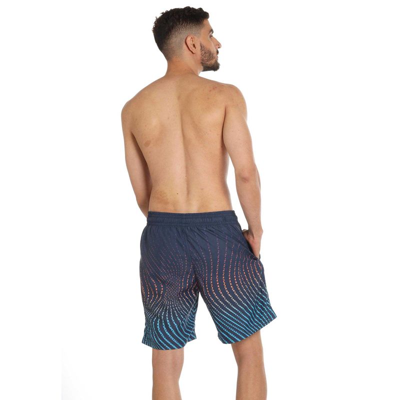 Pantaloneta Riviera Luxe 18 Pulgadas, watershort corto azul con estampado moderno y logo Speedo blanco en la parte delantera izquierda