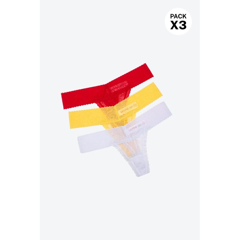 Cierra el año con el lucky panty Este panty con silueta tipo brasilera elaborado en encaje, un material que evoca delicadeza y feminidad. Con una cintura amplia que se ajusta suavemente al cuerpo, este panty realza tu figura favoreciendo a tu cuerpo. Encuentralo en color amarillo, simbolo de la abundancia, color rojo simbolo del amor y color blanco que representa la paz.