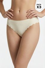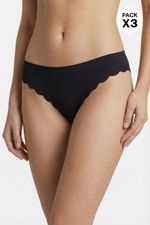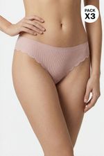 Panty tipo brasilera en presentación de paquetería X3, diseñado con tecnología de corte láser y termofusionado en la cintura, evitando que queden marcas en la piel además de proporcionar un acabado delicado e invisible, junto con su acabado de curvas en el frente sobre las piernas. Esta elaborado en microfibra, lo que lo convierte en una prenda ideal para el día a día por ser flexible y cómoda. Además cuenta con refuerzo en algodón que brinda transpirabilidad e higiene en la zona intima.