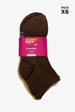 Pack de 6 medias tipo tobillera para mujer perfectas para combinar con distintos tipos de calzado. Confeccionadas en poliéster, un material resistente y cómodo, brindan un ajuste ligero y transpirable. Ideales para el uso diario, garantizando confort y durabilidad en cada paso.