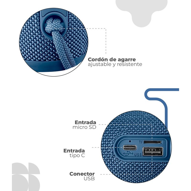 • Funciones: Bluetooth 5.0, MicroSD o TF y USB