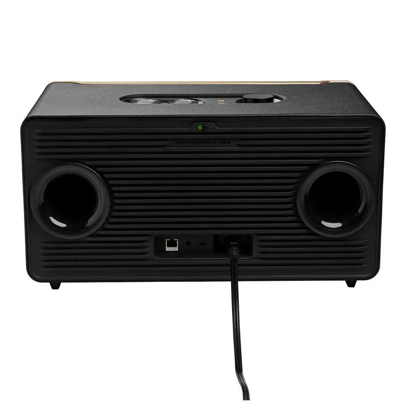 JBL Authentics 500 ofrece el estilo icónico inspirado en los diseños clásicos de JBL, con un look que complementa cualquier habitación, llenando fácilmente incluso el espacio más grande con un sonido JBL superior.
