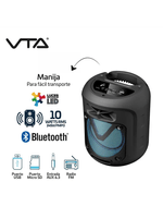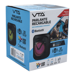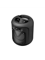 Parlante recargable 10W RMS. Diseño cilíndrico. Luces LED con diversos colores. Bluetooth versión 5.0. Puerto de lectura USB y Micro SD.Radio FM. Entrada auxiliar 6.3mm para micrófono.