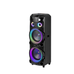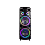 Cuenta con iluminación LED dinámica, batería interna recargable de larga duración y control remoto, brindando comodidad, movilidad y una experiencia audiovisual completa