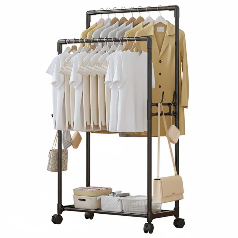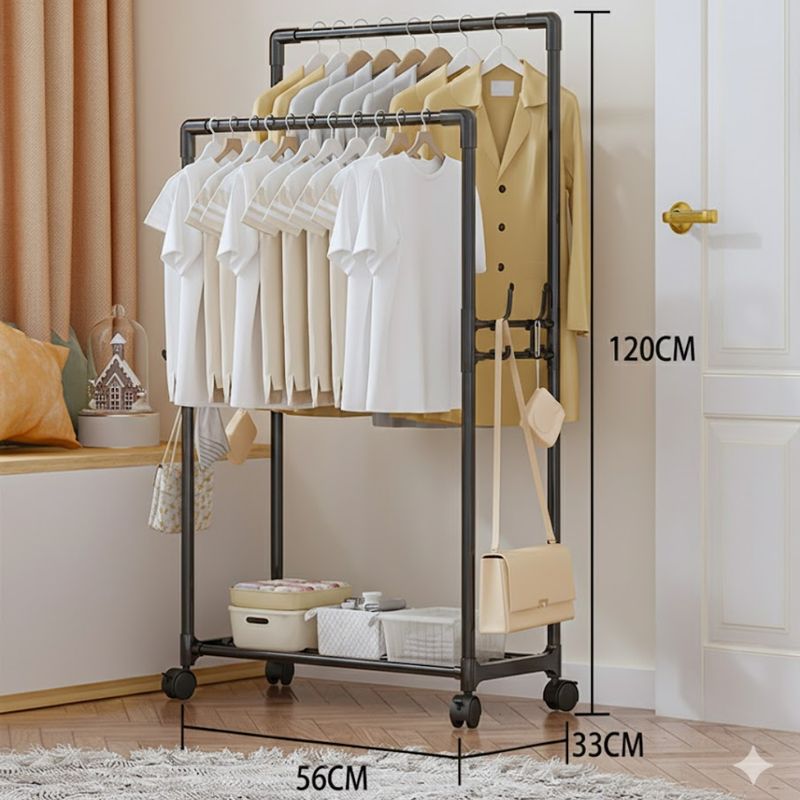 Este perchero doble con ruedas está diseñado para brindar una solución práctica, resistente y elegante al almacenamiento de ropa y accesorios. Su sistema de doble barra permite colgar una gran cantidad de prendas sin ocupar demasiado espacio, ideal para dormitorios, vestidores, locales comerciales o lavanderías.