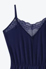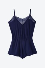 Pijama tipo entero corto elaborado elaborada en en modal, un material de tacto suave que brinda un alto nivel de comodidad, con textura acanalada que añade un detalle innovador. Cuenta con un delicado encaje en el escote, que añade feminidad, tirantes delgados ajustables que brindan funcionalidad, elastico en la cintura que favorece la figura. Silueta que brinda comodidad todas las noches.