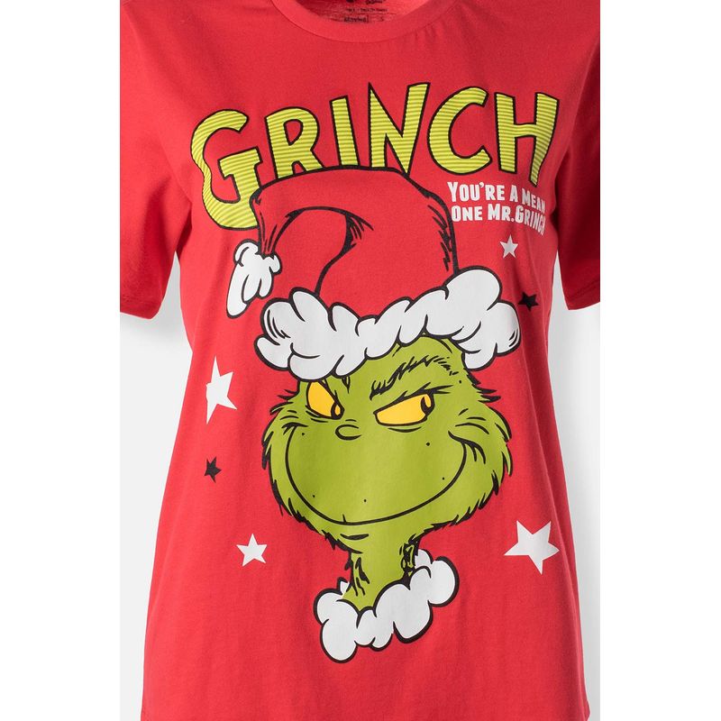 ¿Lista para que el espíritu navideño más travieso acompañe tus noches de descanso? Este pijama de The Grinch combina la comodidad del algodón premium con el encanto del personaje más querido de la Navidad. La camiseta en rojo vibrante presenta al icónico Grinch con su gorro navideño, mientras que el pantalón largo despliega un patrón festivo que hará que cada noche sea una celebración. Perfecto para maratones navideños, noches de películas familiares o simplemente para dormir con una sonrisa.