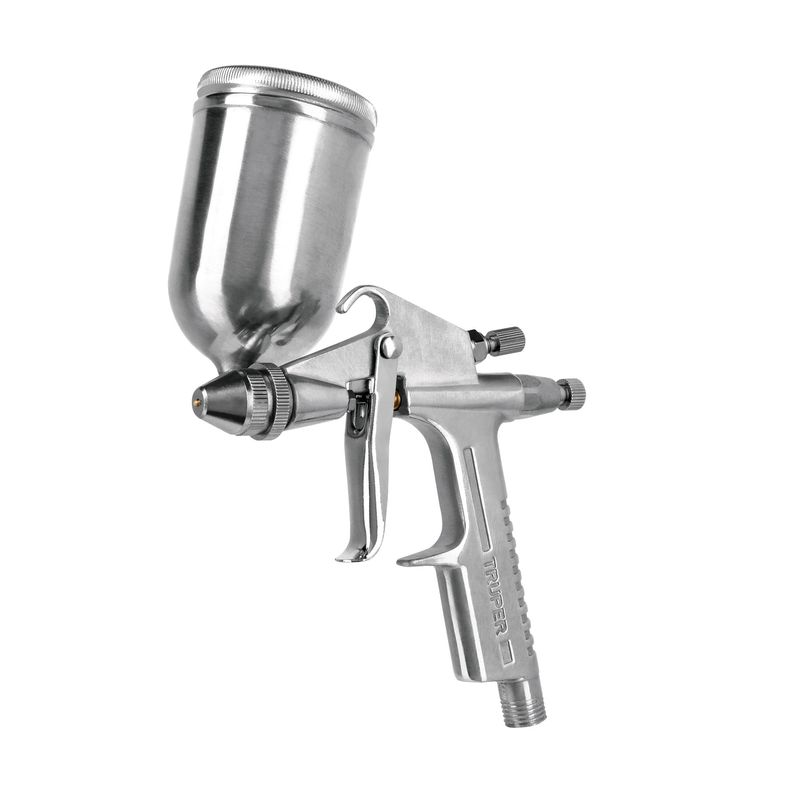 • Serie 400 tecnología LVMP (Bajo volumen / Media\n\npresión) ideal para usos generales a una velocidad\n\nóptima de aplicación\n\n• Cuerpo pulido y vaso de aluminio multiposición\n\n• Tobera de latón y aguja de acero\n\n• 2 perillas de control: Flujo de material y tamaño de\n\nabanico\n\n• Fácil limpieza, desarmado sencillo que facilita el\n\nmantenimiento\n\n• Para materiales de base solvente\n\n• Ideal para trabajos de retoque