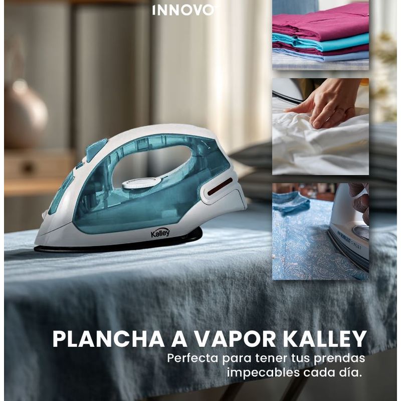 ¡Luce tus prendas impecables todos los días! La plancha a vapor Kalley cuenta con 1000W de potencia para eliminar arrugas rápida y fácilmente, cuidando cada tipo de tela gracias a su temperatura ajustable. Su suela antiadherente se desliza suave y su sistema de spray humedece la ropa para un acabado perfecto.