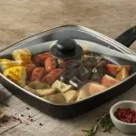 Tapa de vidrio templado que permite monitorear la cocción sin perder calor.
