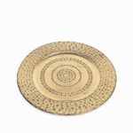 Plato base en bambú con detalles dorados, perfecto para atender celebraciones y ofrecer aperitivos. Se convierte en plato de presentación, cuando se pone para adornar la mesa y se retira al servir el primer plato.
