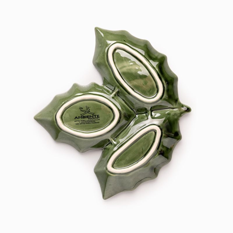 Dale un toque natural y elegante a tu mesa con este plato decorativo de cerámica. Su diseño en forma de hoja lo hace perfecto para servir dulces y aperitivos, convirtiéndose en un complemento ideal para la decoración de tus fiestas especiales.