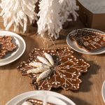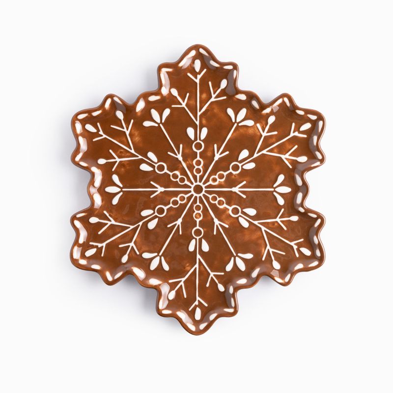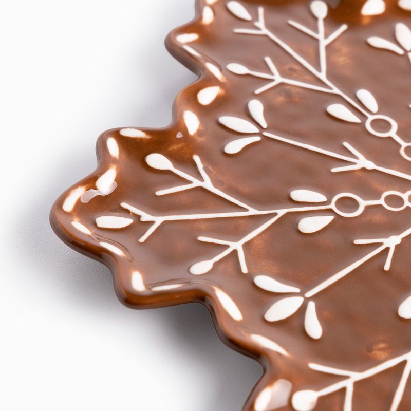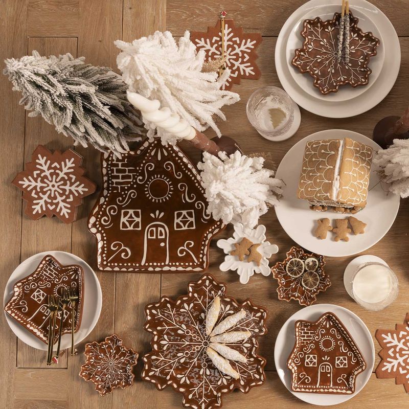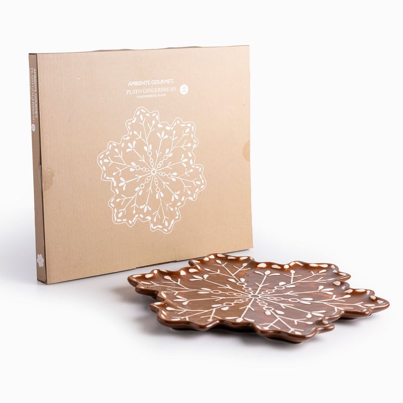 Plato en porcelana con diseño de galleta navideña, con él creas un impresionante centro de mesa y punto de atención gracias a su tamaño grande y majestuoso, inyecta instantáneamente una dosis de alegría y calidez festiva a la decoración.
