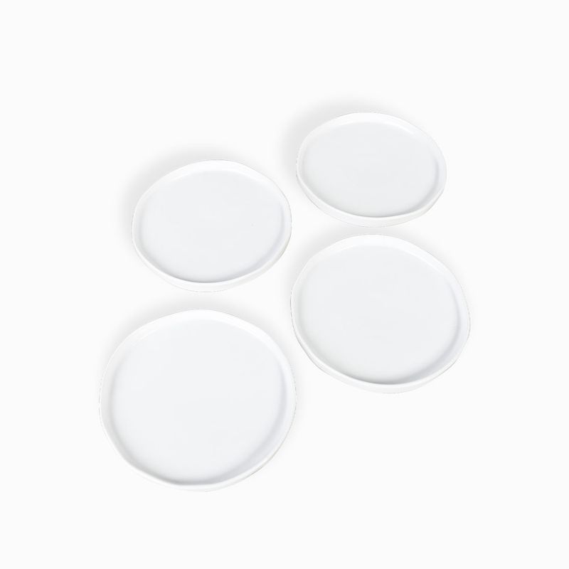 Set x cuatro (4) platos con el tamaño perfecto para postres y ensaladas. Nuestra nueva vajilla se convertirá en el nuevo clásico para la mesa. Su diseño limpio y sobrio transmite la armonía de la cultura oriental, sus líneas onduladas evocan la arquitectura de los templos y sus bordes pronunciados son un elemento clave de la gastronomía japonesa que llenará de estilo tu mesa. País de origen: China. Importador: Distribuidora Matec S.A.S