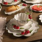 El plato mediano en cerámica mantiene la misma esencia artística en un formato más compacto y manejable. Es la elección perfecta para servir porciones individuales, acompañamientos o para añadir un toque de color a tus desayunos y meriendas. Esta serie es perfecta para anfitriones que buscan piezas que no solo sirvan alimentos, sino que cuenten una historia de frescura y pasión por la cocina. Su diseño coordina magistralmente con elementos de madera natural, fibras orgánicas y el resto de la colección Huerto Verde.