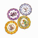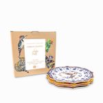 Set de platos base en porcelana de la vajilla Tesoro Jungla, vienen cuatro (4) piezas, junto con complementos de colores añadirán un diseño natural a la mesa. Este plato es perfecto para servir platos principales de ensaladas, platos fuertes y grandes cortes de carne.