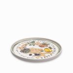 Plato base vajilla Trattoria en porcelana sirve para colocar encima los demás platos de la vajilla, decorando con recetas clásicas italianas, complementando cada espacio y reforzando la temática del evento o celebración.