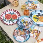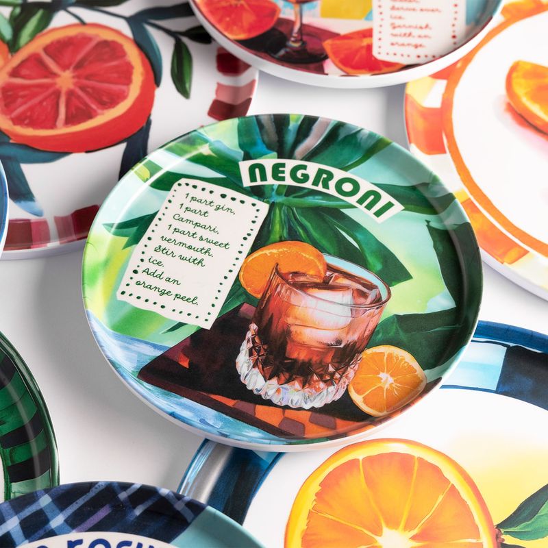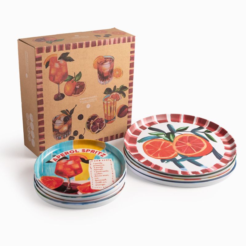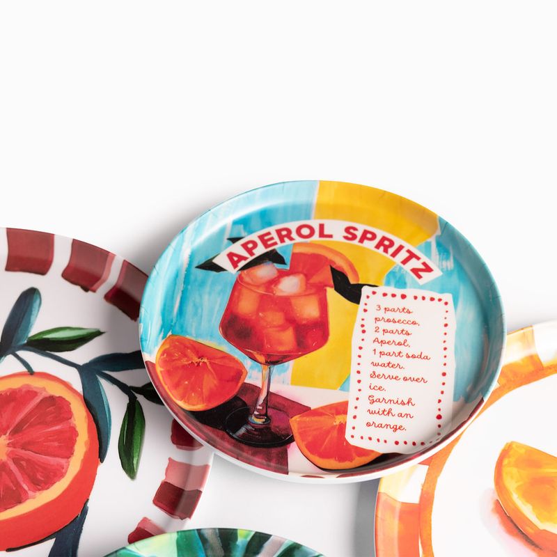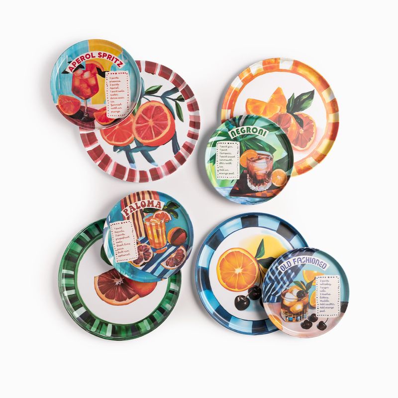 Cada plato es una obra visual multicolor inspirada en la frescura de los cócteles y las frutas tropicales, ideal para crear una atmósfera alegre y relajada. Fabricados en 100% melamina, estos platos ofrecen la durabilidad necesaria para el uso exterior, siendo resistentes a golpes y caídas sin perder su elegancia. El conjunto viene en un Set x8, que incluye dos tamaños diferentes para cubrir todas las necesidades de un servicio de mesa completo, son perfectos para picnics, terrazas o días de piscina.
