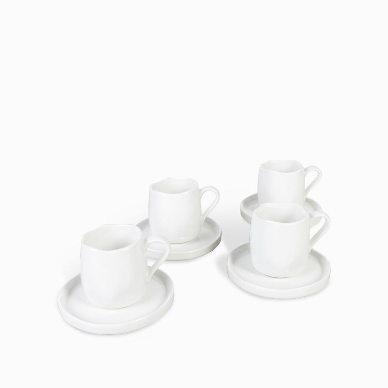 Set de 8 piezas para 4 juegos de taza y plato en porcelana de 250ml, de la colección Kioto, este es un juego de pocillo y plato ideal para servir bebidas calientes, después de la comida. Nuestra nueva vajilla se convertirá en el nuevo clásico para la mesa. Su diseño limpio y sobrio transmite la armonía de la cultura oriental, sus líneas onduladas evocan la arquitectura de los templos y sus bordes pronunciados son un elemento clave de la gastronomía japonesa que llenará de estilo tu mesa. País de origen: China. Importador: Distribuidora Matec S.A.S