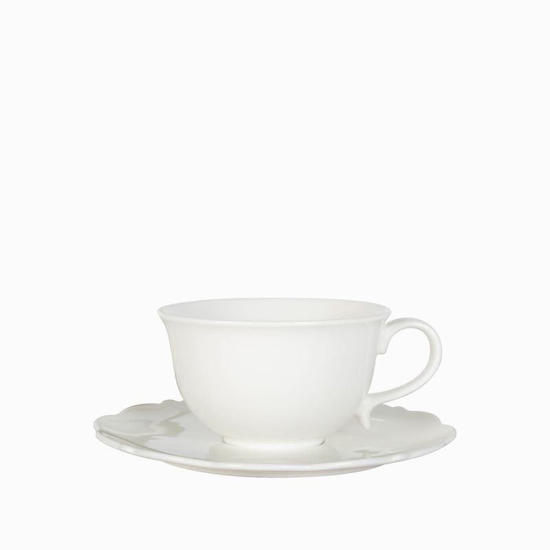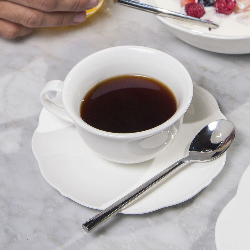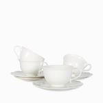 Set de taza y plato para bebidas calientes, con diseño atemporal en blanco clásico los hace muy versátiles, ideales para mezclar y combinar con otras vajillas y piezas de mesa.