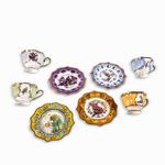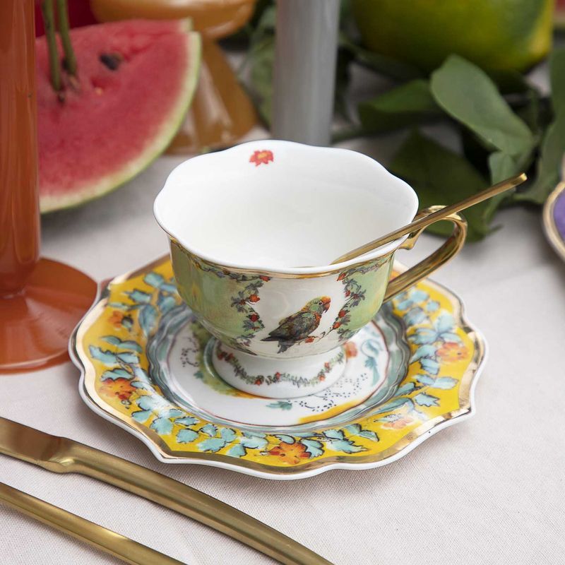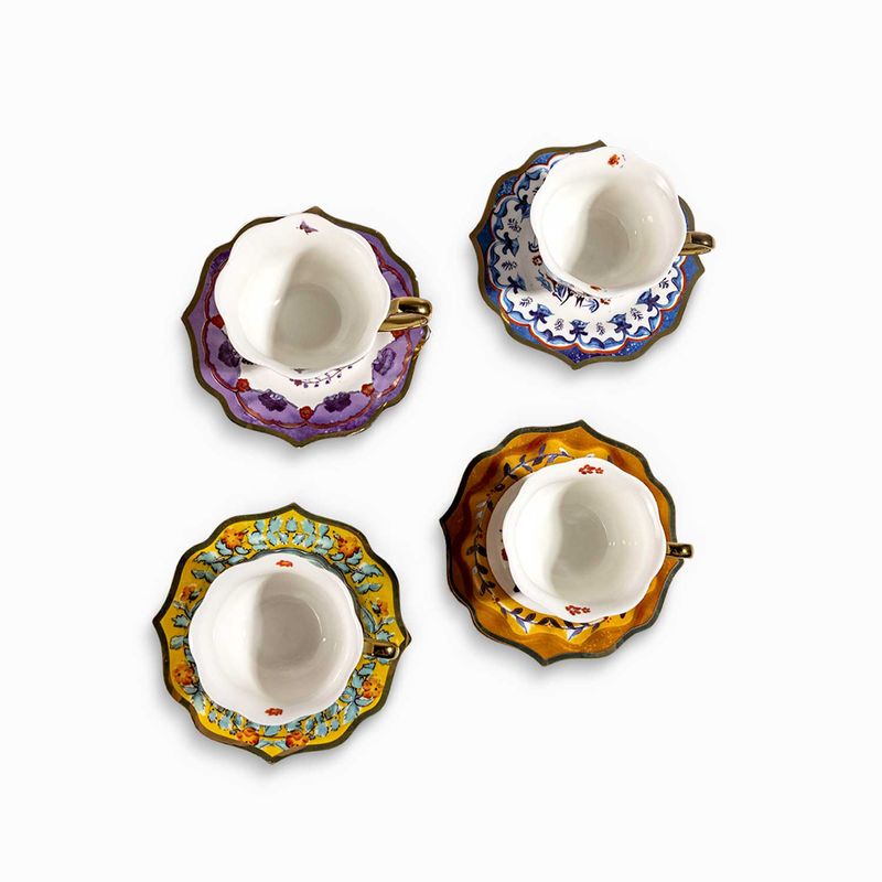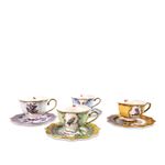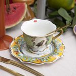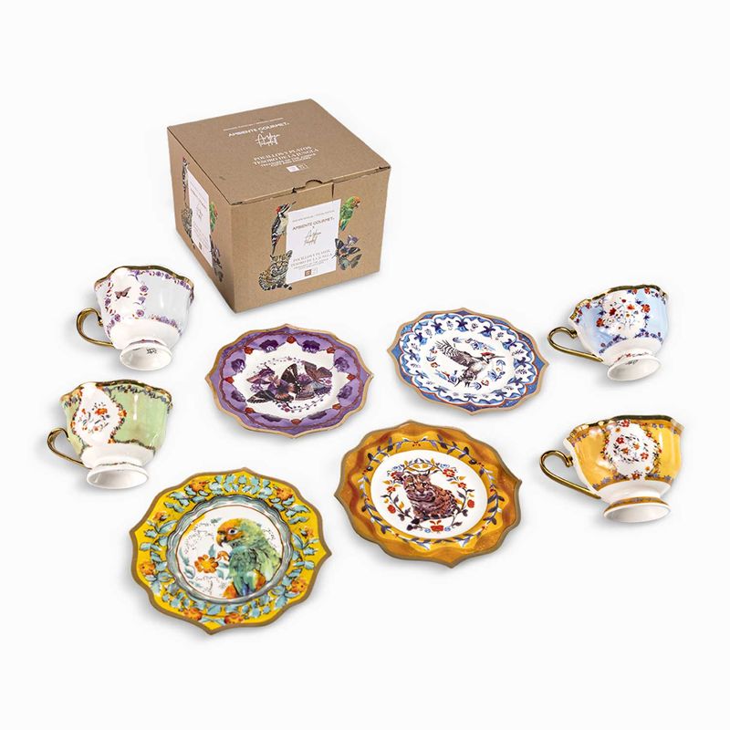 Set por cuatro (4) de taza y plato para bebidas calientes para 170 ml, con figuras de animales y flores, pocillos ideales para mezclar y combinar con otras vajillas y piezas de mesa.