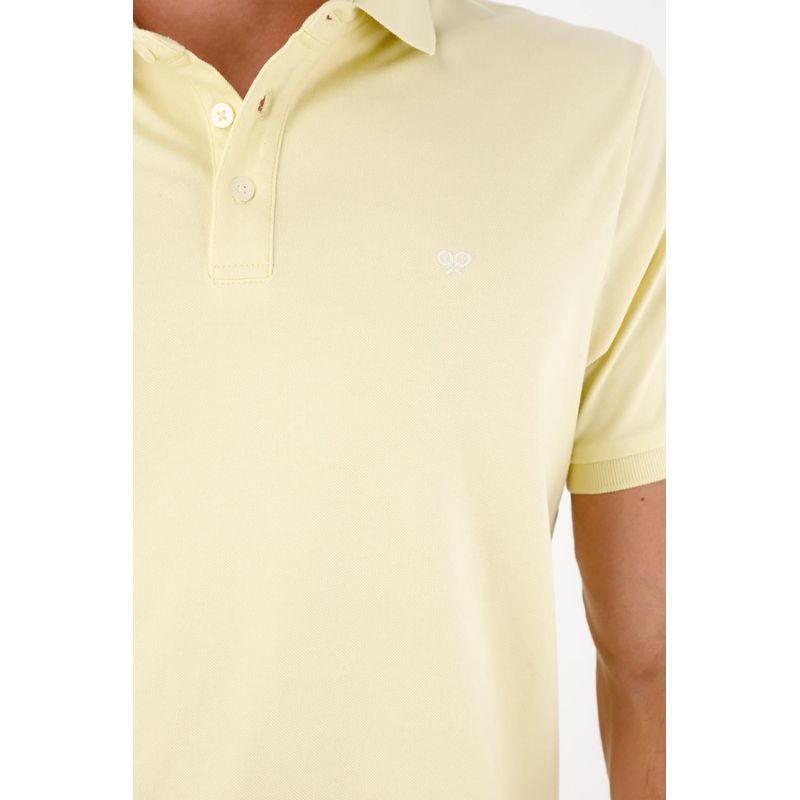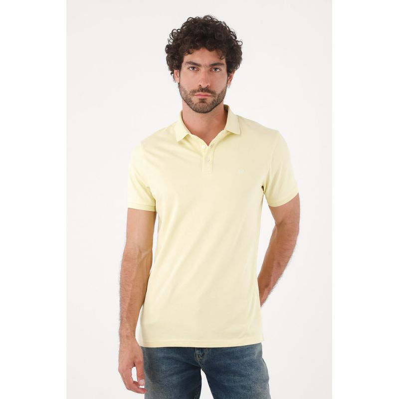 Este polo de algodón para hombre se luce en un amarillo pastel entero que refresca sin esfuerzo. El cuello y los puños acanalados definen la silueta y mantienen el look pulido; la tapeta con botones al tono suma limpieza visual; y el pequeño logo bordado al pecho aporta identidad sutil. Su fit clásico cae recto sobre el torso para un estilo versátil y fácil de combinar en la ciudad.