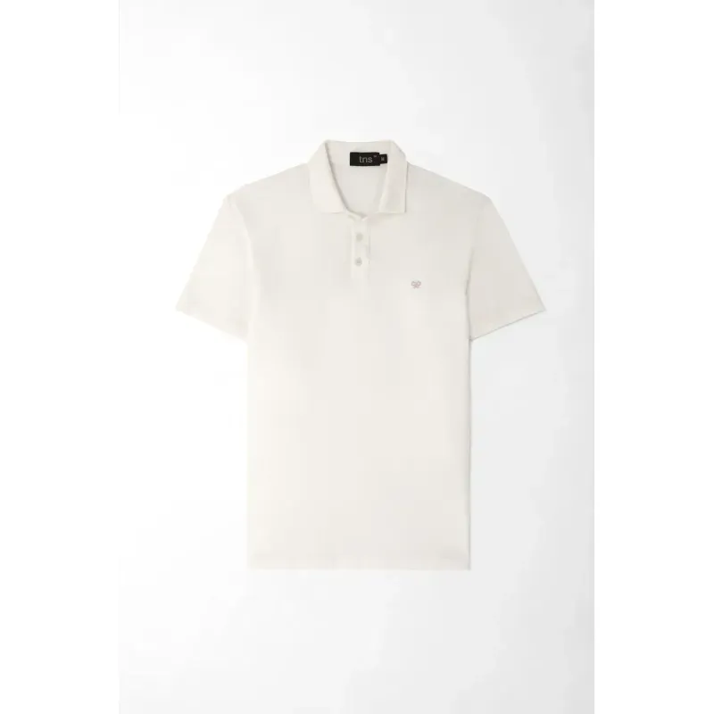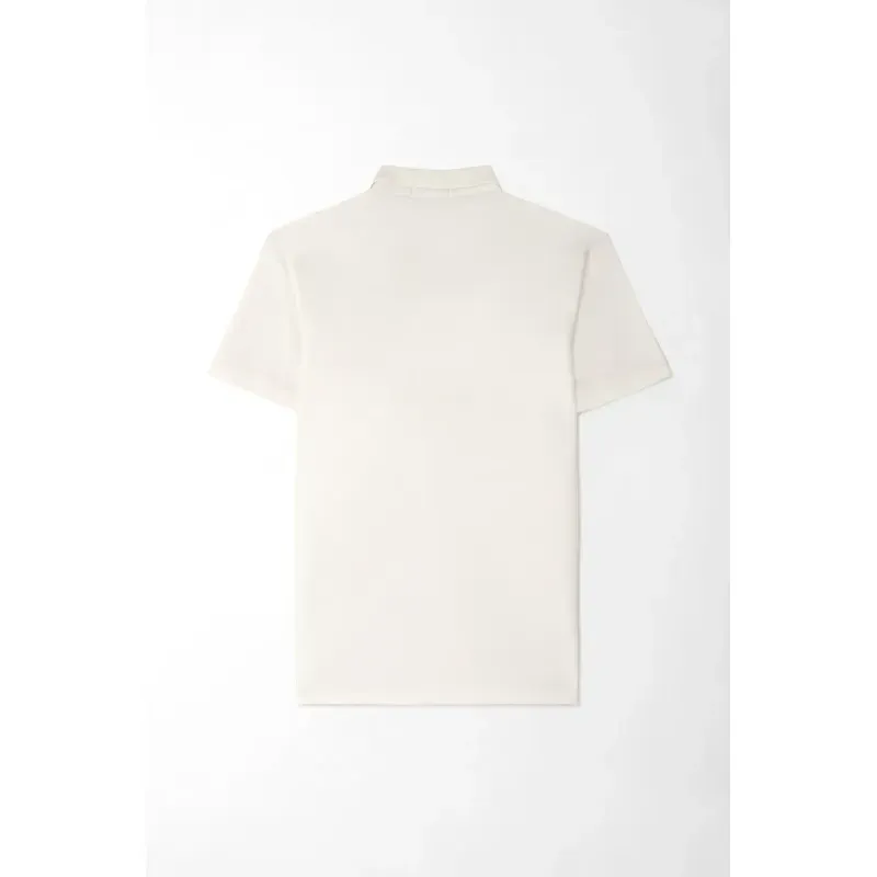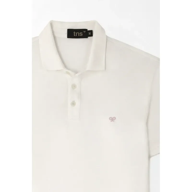 Minimal que dice mucho. Un polo blanco limpio y actual que apuesta por los detalles justos: cuello clásico con tapeta de dos botones y un mini ícono al pecho que firma estilo sin gritar. El tejido de algodón con un toque de elastano acompaña el movimiento del día y el fit regular cae natural, manteniendo una silueta nítida. Las mangas cortas con terminación ceñida enmarcan el brazo y refuerzan ese look pulcro que funciona en cualquier plan urbano.