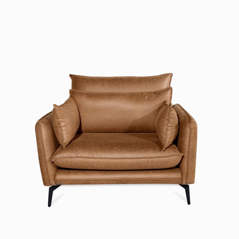 Material | Estructura en madera maciza dura, tejido gofrado, relleno en espuma y resortes, patas en metal. |