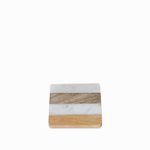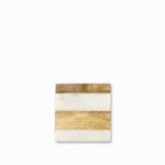 Portavasos en madera y mármol que además de proteger la mesa de manchas y rayones, complementa la decoración, con diseño de rayas.