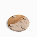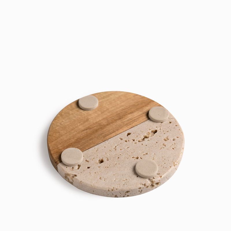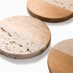 Juego de posavasos en mármol y acacia vienen 4 piezas, sirven para soportar bebidas heladas y calientes en todo tipo de superficies, protegiendo los muebles de regueros, manchas y rasguños. Por su material la piedra presenta diferentes detalles en cada pieza.
