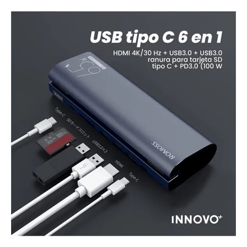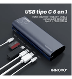 Diseño multipuertos 6 en 1, ideal para múltiples dispositivos.