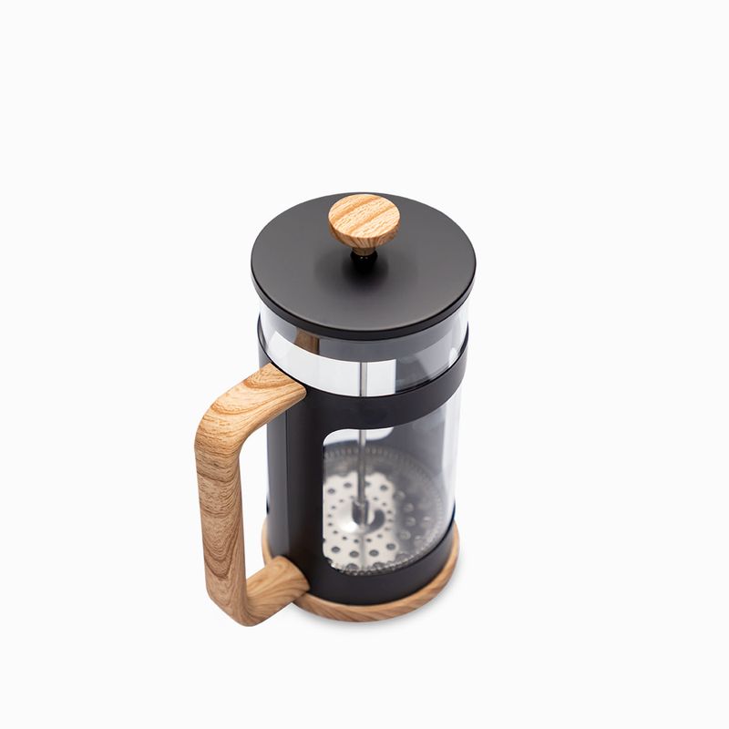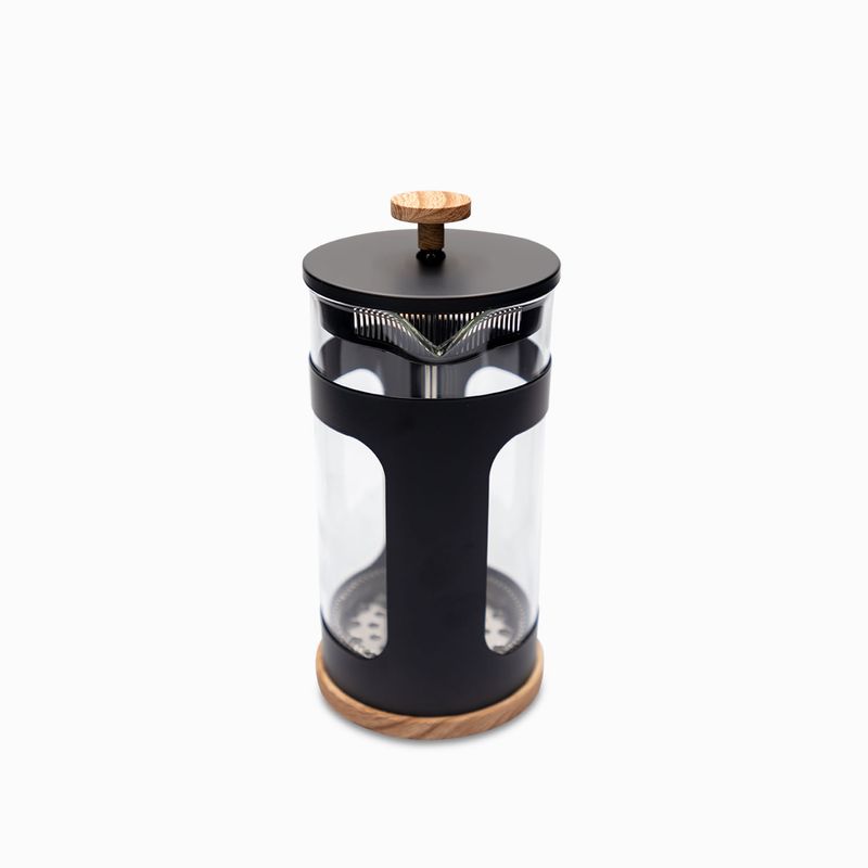 Cafetera tipo prensa francesa cuerpo de borosilicato, estructura y tapa en acero inoxidable, con capacidad para 1000 ml. Este diseño clásico, simple y hermoso es reconocido mundialmente como una de las mejores formas de preparar café rico y con cuerpo en pocos minutos. Además de ser práctica y funcional, se puede sacar el vaso para limpiar de forma fácil. No se puede lavar en el lavavajillas, ni llevar a fuentes de calor directas.
