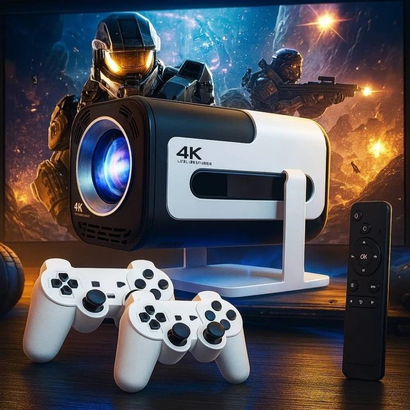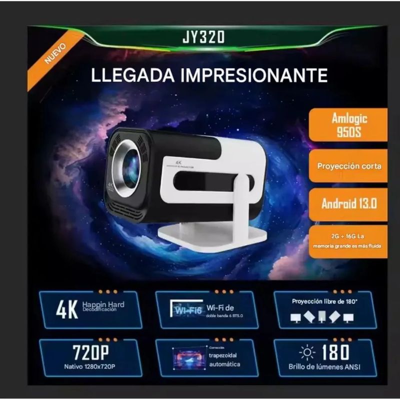 Compatible con pantalla 4K y máxima de 130 pulgadas: el proyector es compatible con la decoración de videos Full HD 4K, con resolución nativa de 1280 x 720, alta relación de contraste dinámico de 10000:1, deleitarse con cada detalle y colores vibrantes en una pantalla de máximo de 130 pulgadas, creando una experiencia visual inolvidable.