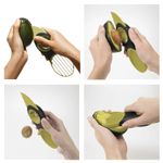 Cortador de aguacate con tres funciones: corta, saca el corazón y rebana con una sola herramienta, es un utensilio de cocina esencial para los amantes de las ensaladas, es de fácil lavado y almacenamiento.