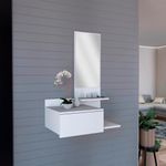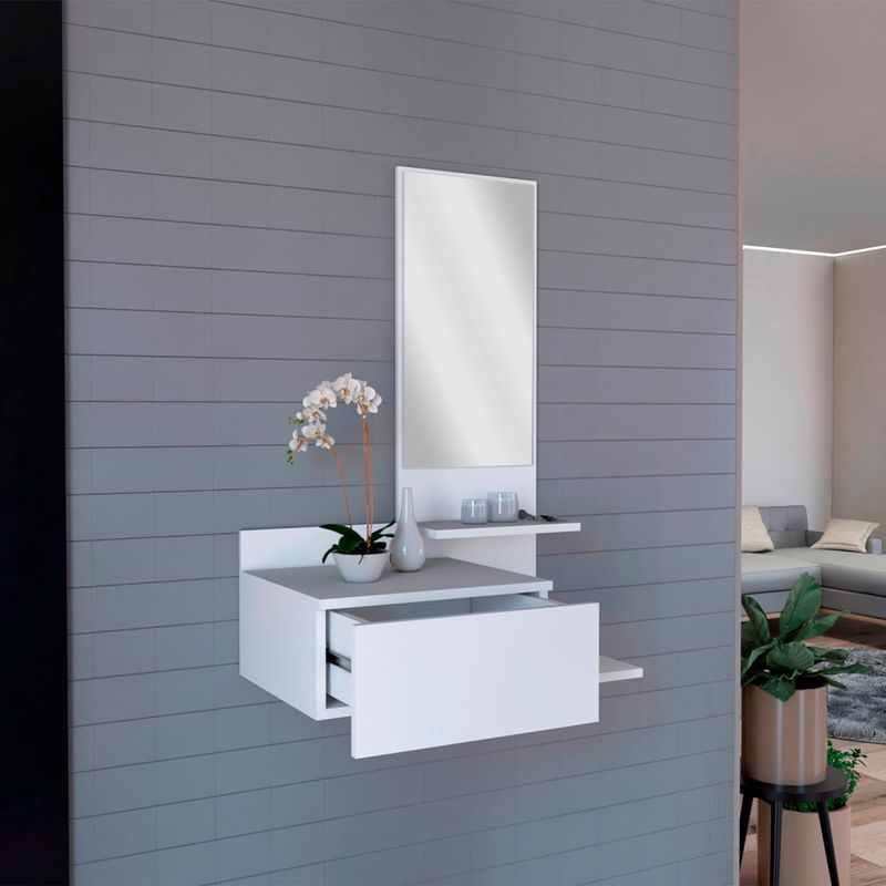 Recibidor que incluye espejo, compartimiento para almacenar objetos, repisa y superficies para ubicar objetos con medidas de: ALTO 91,95 ANCHO 60,1 FONDO 35