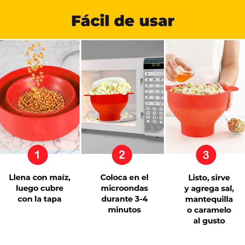 Pop Corn Popper es la nueva forma de preparar crispetas en el microondas usando una mínima cantidad de aceite y en pocos minutos. Con este novedoso recipiente podrás preparar crispetas con los sabores que más te gusten.