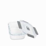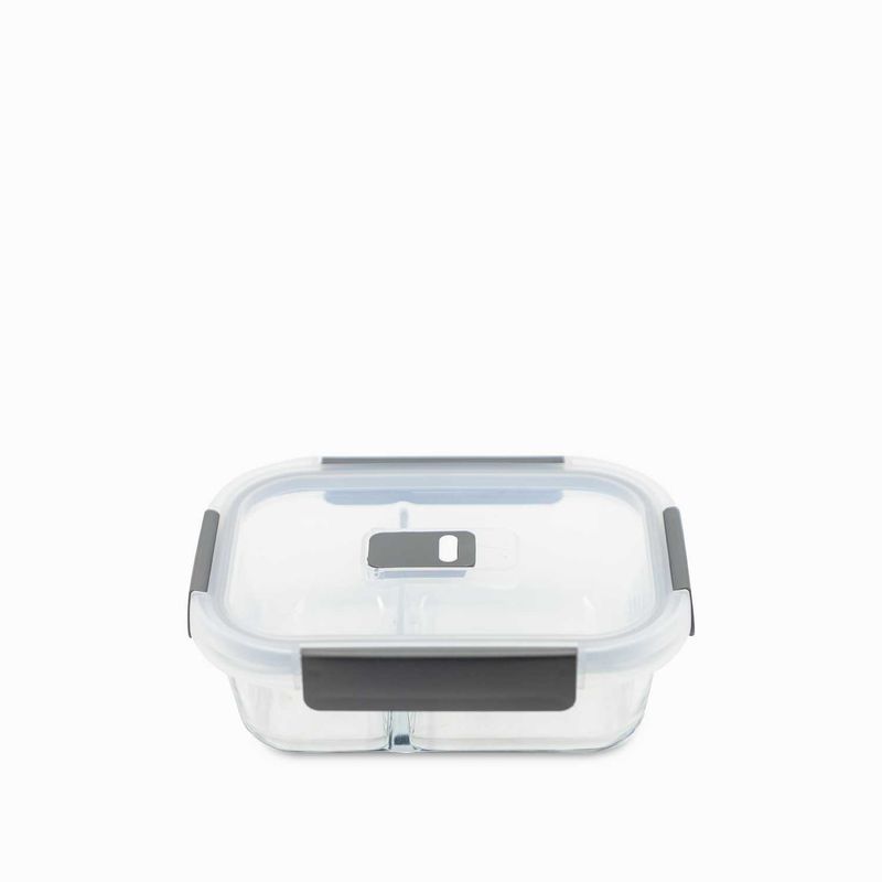 Este recipiente hermético cuadrado de vidrio tiene un práctico sistema para que tus alimentos estén perfectamente protegidos de la humedad del ambiente, su tapa de plástico y caucho aseguran la durabilidad de tus alimentos y las divisiones permiten separar los alimentos. Tiene capacidad para almacenar 600 ml.