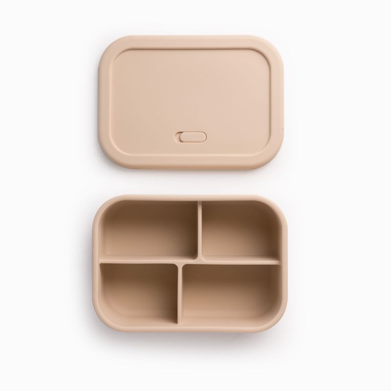 Sus cuatro compartimentos separados te permiten almacenar y transportar una comida completa sin que los alimentos se mezclen. Ideal para loncheras o dietas específicas que requieren porciones precisas. Fabricado en silicona de grado alimentario, es seguro para el microondas, el congelador y el lavavajillas.