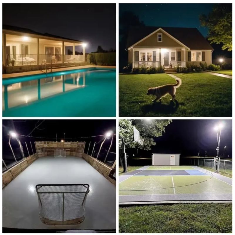 Potencia luminosa de 1000W: Cubre grandes superficies como parques, patios, bodegas, fincas, estacionamientos y áreas deportivas.