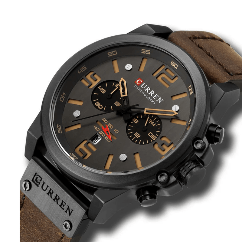 Curren 8314 en correa de cuero marrón es un reloj elegante y versátil, perfecto para quienes buscan un estilo clásico con un toque deportivo. Su caja en acero negro y tablero gris con subesferas funcionales le dan un aspecto moderno y sofisticado, ideal para uso diario o para ocasiones especiales.