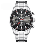 El Curren 8351 combina elegancia y resistencia en un diseño versátil que se adapta a cualquier ocasión. Su caja y correa de acero inoxidable en acabado plateado resaltan con un tablero negro que aporta un contraste moderno y sofisticado. Incorpora función cronógrafo y bisel con taquímetro, ideal para quienes buscan precisión y estilo en un solo accesorio.