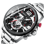 El Reloj Curren 8395 en acero plateado combina estilo clásico con un diseño deportivo moderno. Su tablero negro con detalles en blanco y rojo aporta un contraste elegante y llamativo, mientras que la caja y correa en acero inoxidable plateado brindan resistencia y durabilidad. Es un accesorio ideal para hombres que buscan sofisticación y un look versátil para cualquier ocasión.