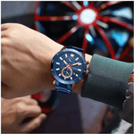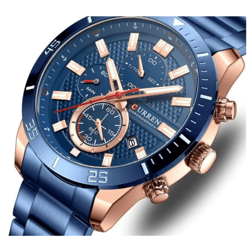 Curren 8417 en acabado azul es la combinación perfecta entre modernidad y elegancia. Su diseño deportivo con tablero en azul profundo y detalles metálicos lo convierte en un accesorio versátil, ideal para hombres que buscan estilo y funcionalidad en un solo reloj.